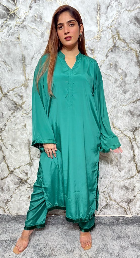 Sku : Zamrud Silk Resham Plain Lace Co-Ord Set